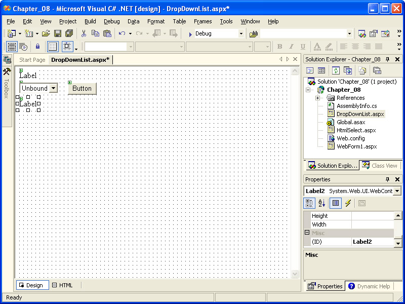 Create a new project in Visual Studio .NET. Name the project Chapter_08. (To avoid conflicting with the practice files—if they’re installed—do not create this project under http://localhost/aspnetsbs.)