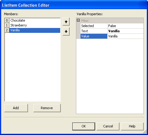 if (!IsPostBack IceCream.Items.Add("Pistachio") IceCream.Items.Add("Rocky Road") // We don't like Strawberr IceCream.Items.Remove("Strawberry") }