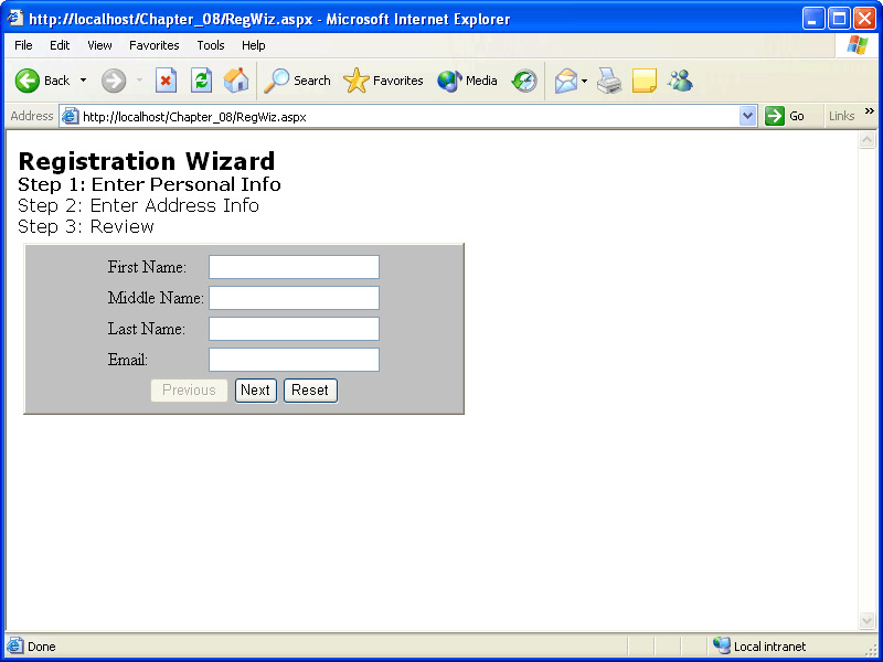 Add the following code to the Page_Load event handler in the code- behind module to take care of initializing the controls: