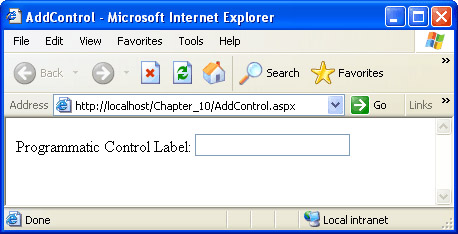 Save the changes, and then build the project. When you browse AddControl.aspx, the output should look similar to the following illustration.