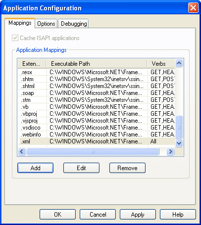 Note that if you want to protect any file named Users.xml in any application on the machine, add the <add> element in Step 2 to the <httpHandlers> element in machine.config rather than to Web.config, and you should add the mapping of the .xml extension to the ASP.NET ISAPI process using the Master Properties in IIS, and apply the changes to all Web sites when prompted. Keep in mind that there is some overhead in having ASP.NET process all requests for .xml files, so you should only do this on a machine-wide basis if you intend to use the RegLogin control across many applications or sites on a machine.