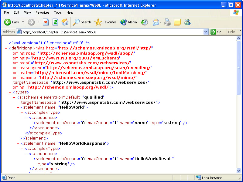 Browse the web service again using Internet Explorer, as described in step 6. The result should look similar to the following illustration: