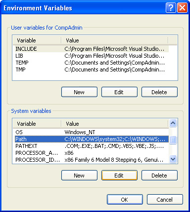 In the Edit System Variable dialog box, add the following paths to the end of string in the Variable value text box. You should prefix each path with a semicolon: