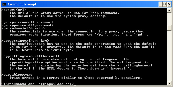 Test the Bin path modification by opening a command prompt from the Start menu and running wsdl /?.