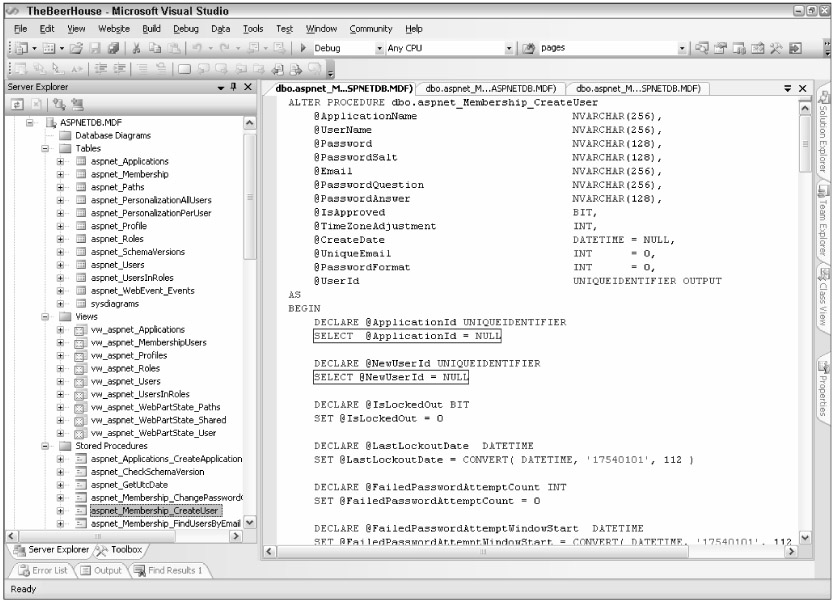 For our site we will use SQL Server 2005 Express Edition, the free edition of SQL Server 2005, to store the accounts' credentials, and this database will also be used for all the dynamic content of the site. In the "Solution" section of this chapter, you'll see in practice how to add and configure the provider for this data store. Although this database edition is adequate for use on a developer's computer, it would be wise to use a more feature-laden edition of SQL Server 2005 for production deployment to get better development and analysis tools, and to get the best performance from high-end server computers.