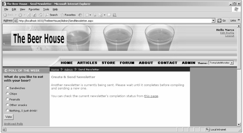 When the page loads, and another newsletter is already being sent, it will look like Figure 7-5.