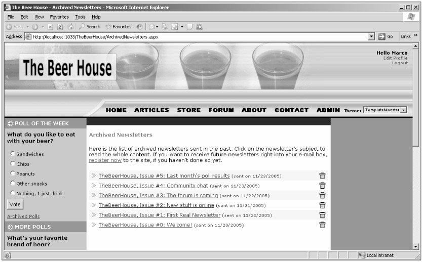 Figure 7-9 shows the newsletter sent earlier, and now archived.