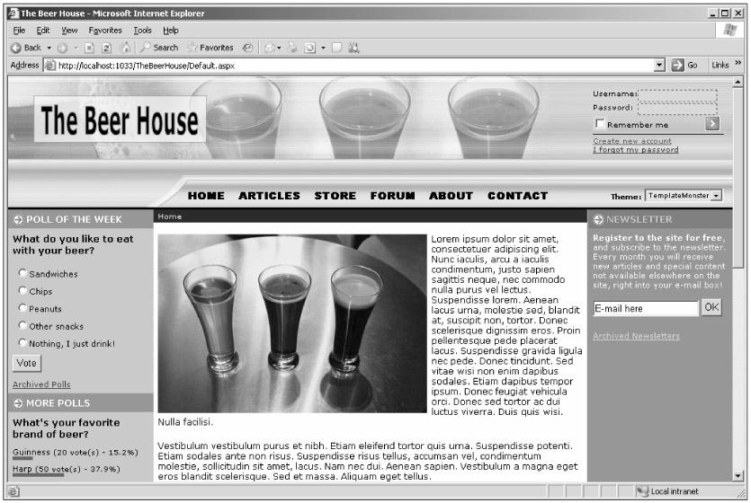 Now that the user control is complete, you reference it at the top of the master.template master page, and create a new instance of it in the right-hand column (see Figure 7-10):