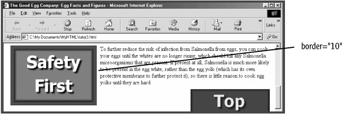 You can use the IMG element's BORDER attribute to control the appearance of the image border. Increase the image link border to 10 pixels (see Figure 4.11):