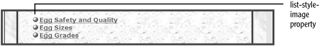 Next, add a style rule to the style sheet that uses the list-style-image property to specify a bullet image to be displayed with the list (see Figure 8.18):