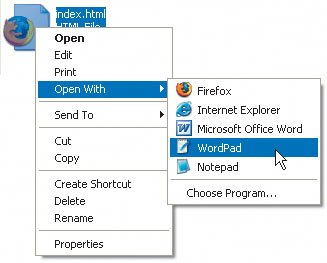 Figure 2.19. In Windows, you can also right-click the document's icon and then choose Edit or Open With in the pop-up menu that appears. On a Mac, Control-click the icon, select Open With in the pop-up menu, and then choose the desired text editor.