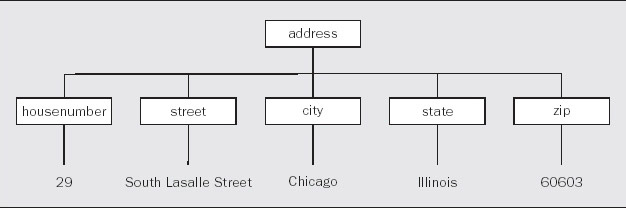 The ability to nest elements is fundamental to defining the structure of the data in a document. We can easily represent the structure of the data in our XML fragment defining an address, as shown below.