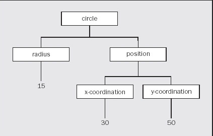The diagram below shows the structure of the first circle definition in XML that we created in the previous section. Even though there's an extra level of elements in this diagram, there are strong similarities to the structure above.