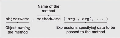 We will learn more about this in Chapter 5, when we look at how to define our own classes. For the moment, just note that you don't necessarily need to pass any arguments to a method. On the other hand there can be several. It all depends on how the method was defined in the class. |