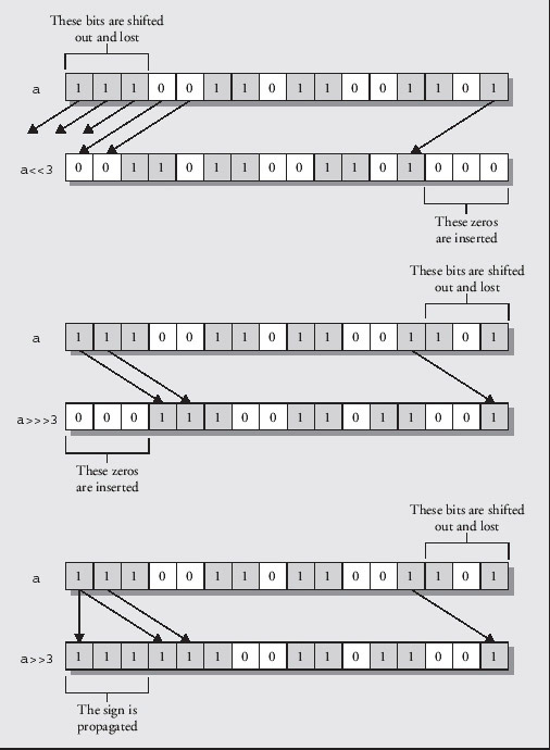 Of course, if the high order bit in the >> operation in the illustration was zero, there would be three zeros at the leftmost end of the result.
