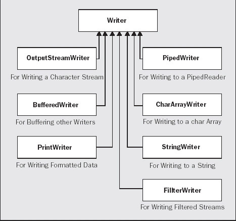 The main subclasses of the Writer class are as shown below:
