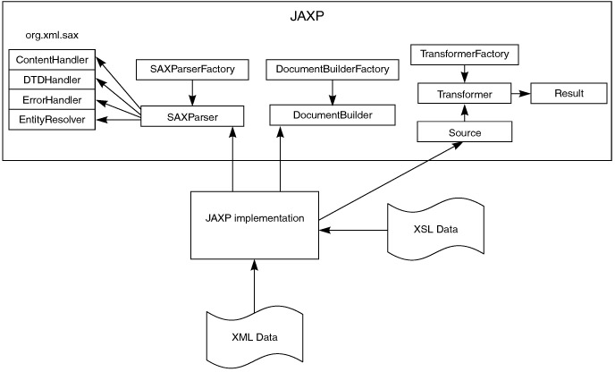 Beginning with J2SE 1.4 (or JDK 1.4), JAXP API is included as a part of the standard distribution and is also part of the J2EE 1.3 specifications. This means that the API will be available in all Java 1.4 runtime environments and all J2EE 1.3 containers. This is noteworthy, because prior to JAXP, there were different versions of XML parsers and transformers from different vendors that used proprietary and incompatible APIs.