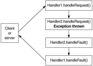 Depending on the stage of request processing, the handleRequest(), handleResponse(), or handleFault() method is invoked.