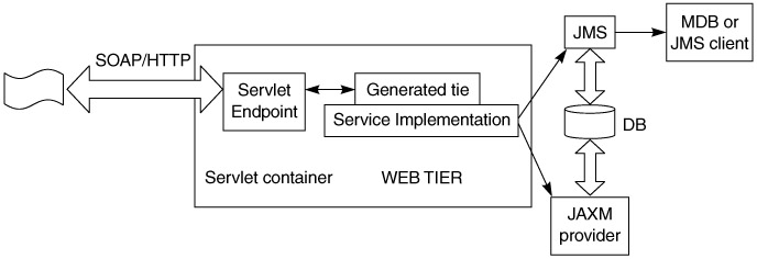 When all the handlers are done processing the request, the endpoint delegates the invocation to the service implementation via the tie.