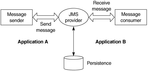 For application A to send messages to Application B with JMS, using point-to-point messaging (Figure 11.11), the code would look like Listings 11.1 and 11.2.