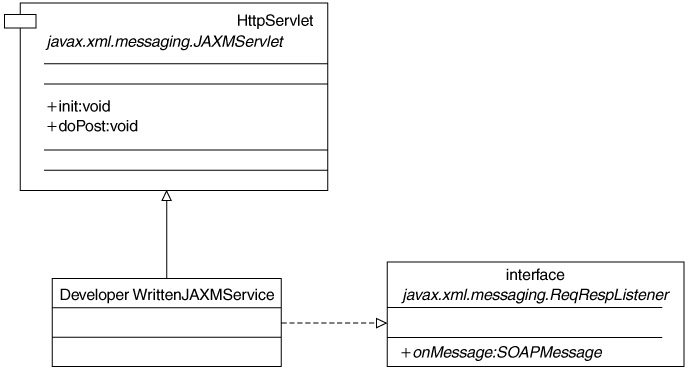 Based on the same lines as its servlet counterpart, the message-driven bean can implement the javax.xml.messaging.ReqRespListener or the javax.xml.messaging.OnewayListener interface, which specifies synchronous or asynchronous behavior for the EJB respectively. The advantage of using an EJB as the listener is that it leverage the transactional services of the EJB container upon receipt of the message.