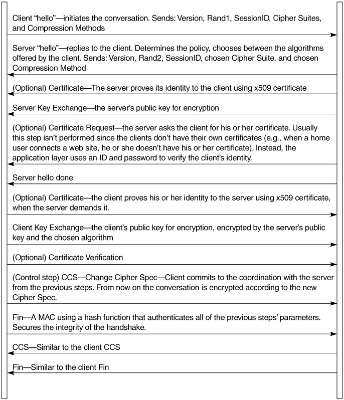 Secure Sockets Layer (SSL) (Figure 15.1) will be the method that secures most Web services. It has become the de facto standard to encrypt data transmitted between HTTP requesters (usually Web browsers) and HTTP servers (Web servers). Secure Sockets Layer operates at the session layer of the OSI stack and provides point-to-point confidentiality and either one-way or two-way authentication. Establishing a secure session involves the following steps: