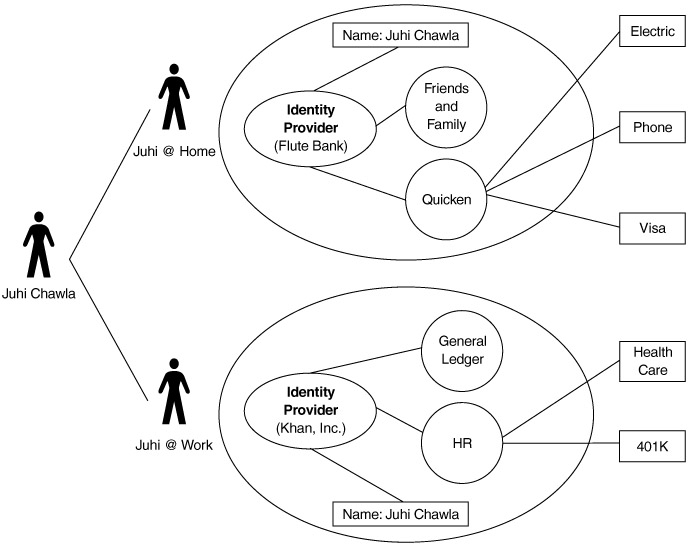Flute Bank will use the circle of trust not only to avoid the need for customers to establish new identities or reauthenticate themselves to each provider but also to tie together payment information that will furnish the Flute Bank credit card number securely to each vendor. This example realizes the goal of the Liberty Alliance, in that identity becomes united but stays decentralized, so that information (credit card number) is available only at the time of engagement, in conjunction with a business transaction.
