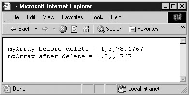 document.write("myArray after delete = " + myArray);