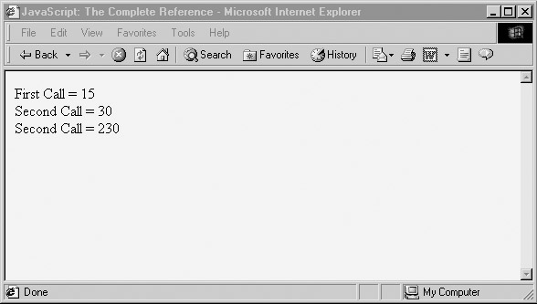 The result shown next demonstrates that by using a static variable we can save data between calls of a function.