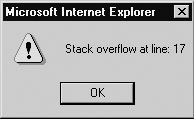 However, if a negative value is passed to the function, the recursion will continue indefinitely. Notice the error produced by Internet Explorer in such a case: