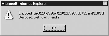 alert("Encoded: " + encodedString + "\n" + "Decoded: " + unescape(encodedString));