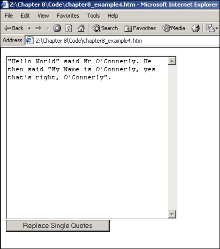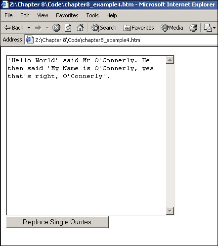Click the Replace Single Quotes button to see the single quotes in the textarea replaced as shown in Figure 8-11.