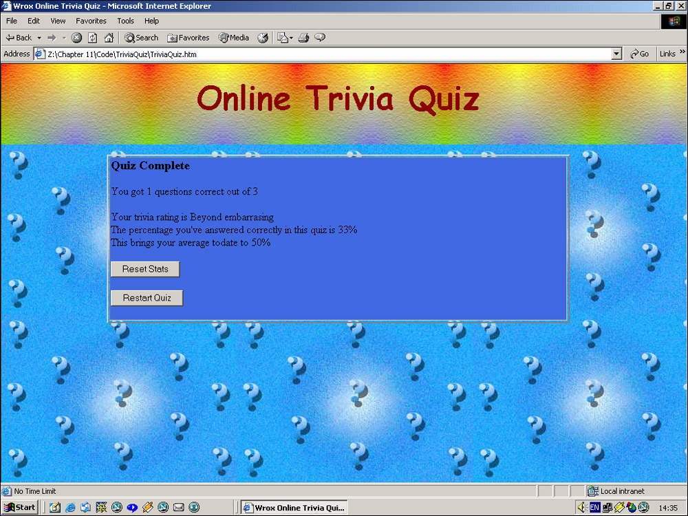 Save the page and load TriviaQuiz.htm.