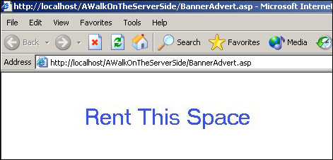 Save the file as BannerAdvert.asp. The file needs to be saved with an .asp extension, because we want the server-side script to be processed. Also, it needs to be placed under the root directory or subdirectory of the root directory of the server or in a directory that has been made into a virtual directory.