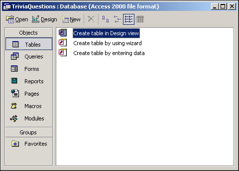 Of course, our first job is to create a database to hold the questions.