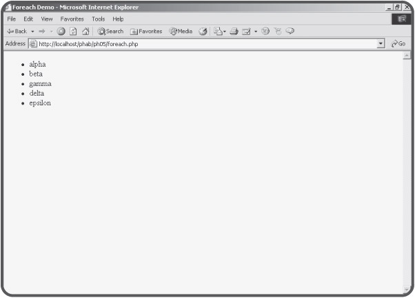 $list = array("alpha", "beta", "gamma", "delta", "epsilon");