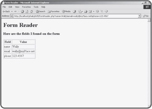 The formReader program does its work by taking advantage of an associative array built into PHP. Until now, you've simply relied on PHP to create a variable for you based on the input elements of whatever form calls your program. This automatic variable creation is called register_globals. While this is an extremely convenient feature, it can be dangerous, so some administrators turn it off. Even when register_globals is active, it can be useful to know other ways of accessing the information that comes from the form.