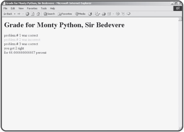 When the user takes a quiz, the user's responses are sent to a program that grades the quiz and provides immediate feedback, as shown in Figure 6.4