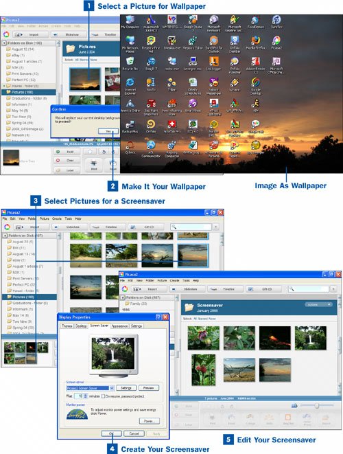 After your computer remains idle for the amount of time specified in the Wait box in the Display Properties dialog box, the Picasa screensaver launches and begins showing the images you selected.
