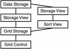 When you execute a query that brings back a large result set, you may notice that the first rows start showing up immediately and the scroll bar continually reflects new rows constantly coming in. Moreover, even if the result set is huge, overall process memory of SQL Server Management Studio remains steadily low, and scrolling and viewing of the data is not affected. To understand how this is accomplished, let's look at the internal architecture of Query Editor. Query Editor ArchitectureThe Query Editor internal architecture is shown in Figure 5-4. The user interface component responsible for displaying data and scrolling is called the Grid Control. It does not contain data; its only responsibility is coordinating what data is currently in a scroll view and which needs to be fetched for display. Figure 5-4. Query Editor internal architecture.