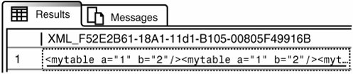 Data fetched from the server is immediately placed into physical Data Storage, that is, a temporary file on the disk. These files get created for each outstanding query that has any results and get cleaned up after the query window is closed or a new execution is initiated. Data that needs to be read from the file is retrieved by a series of data readers called Storage View components. A Storage View component understands the internal format of the storage data file and can access the file in random fashion, de-serializing any data column object that is requested by the presentation layer. The Grid Storage component sits between the data layer and the user interface layer and provides "glue" that ties everything together. For example, the Grid Storage component produces application-specific formatting of the data for display. It's worth noting that when a user moves columns around the grid control or sorts data, the actual data on disk remains intact, and only the display changes. Grid Storage keeps track of those changes and translates physical data into data for display. If row sorting is requested, another component called Sort View gets involved. Sort View has its own Storage View component that references Data Storage data, performs all required sorting operations, and builds an index of the relative order of rows in storage required for display. The Grid Storage component constantly references Sort View to find out the absolute row number for the relative row requested for display, and subsequently makes the proper request to its own Storage View to fetch data. XML Result SupportWhen query data contains data of the XML data type, Query Editor handles it in a special way. It provides a link inside the grid for each value of such data type, as shown in Figure 5-5. Figure 5-5. XML data type link.
