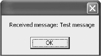 The client is modeled after the One-Way Remoting example. It allows any message to be dispatched to the client. The message is then returned through a callback and handled in a local event, which displays the message box shown in Figure 3-10.
