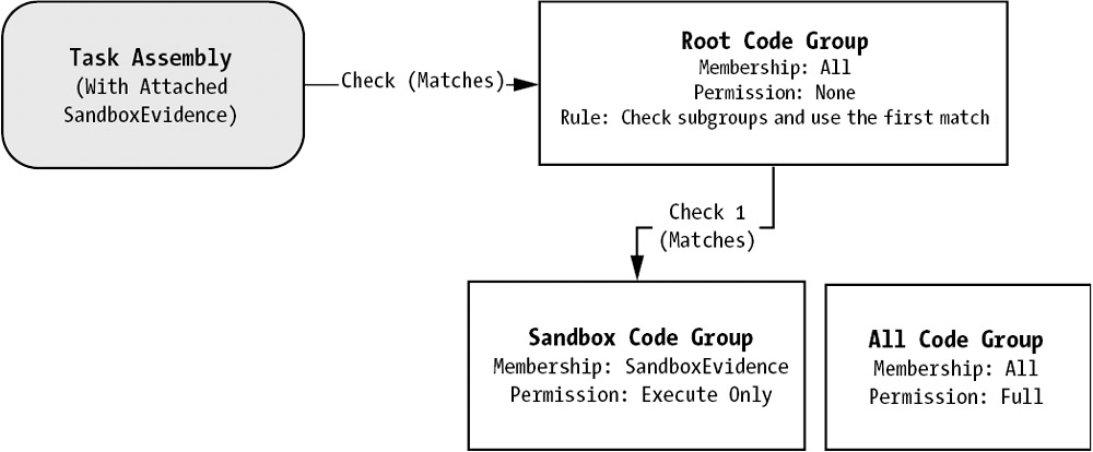 Now you have the required ingredients to create a safe sandbox. The first step is to determine what permissions sandboxed code should be granted. In this case, we'll only allow it the Execute permission. This allows it to perform calculations, allocate memory, and so on, but doesn't allow it to access the file system, a database, or any other system resource.