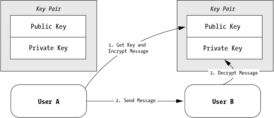 This demonstrates how asymmetric encryption can be used to protect information without needing to exchange a shared, secret key value. This makes it possible for any two parties on a network to exchange encrypted data, even if they have never met before. The process is diagrammed in Figure 11-1.